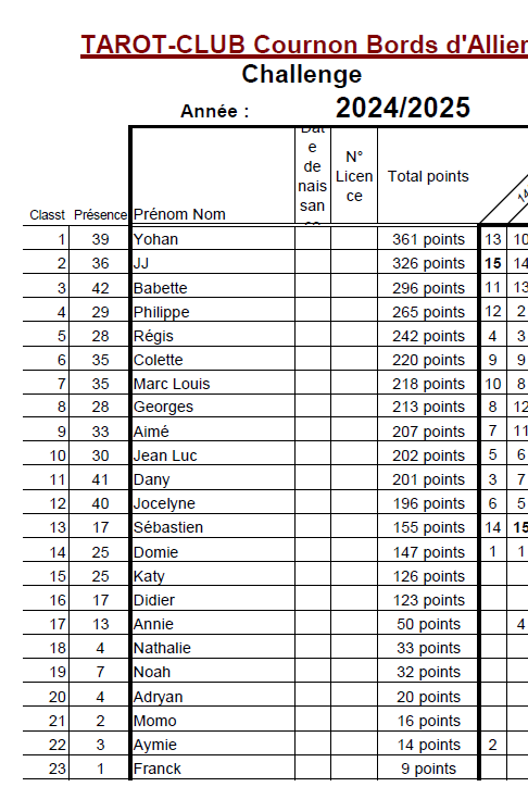 Challenges du club/Championnats de France/Qualificatifs du comité